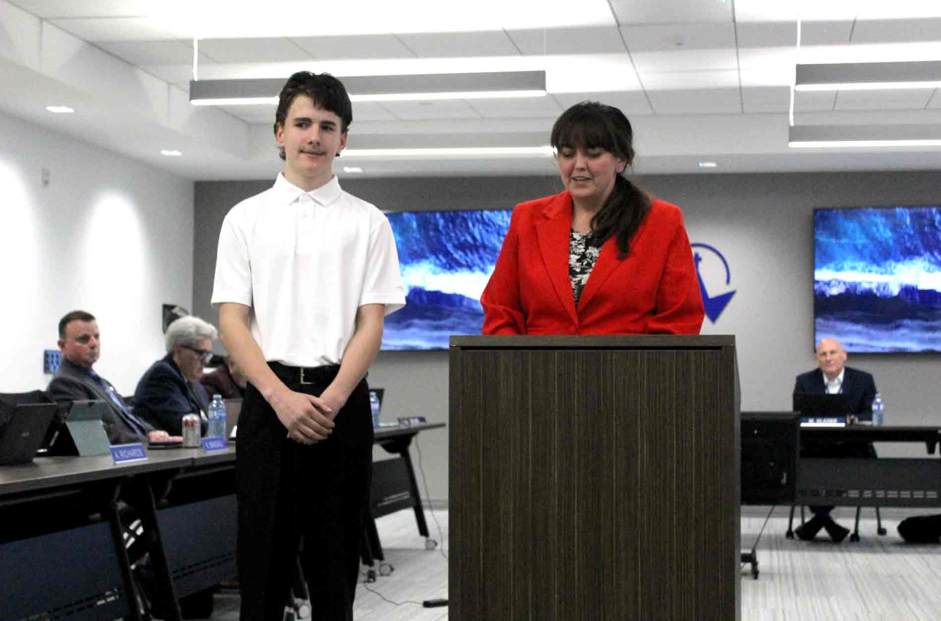 Trustee Cassandra O’Donnell presented Seth Garrison with the award.