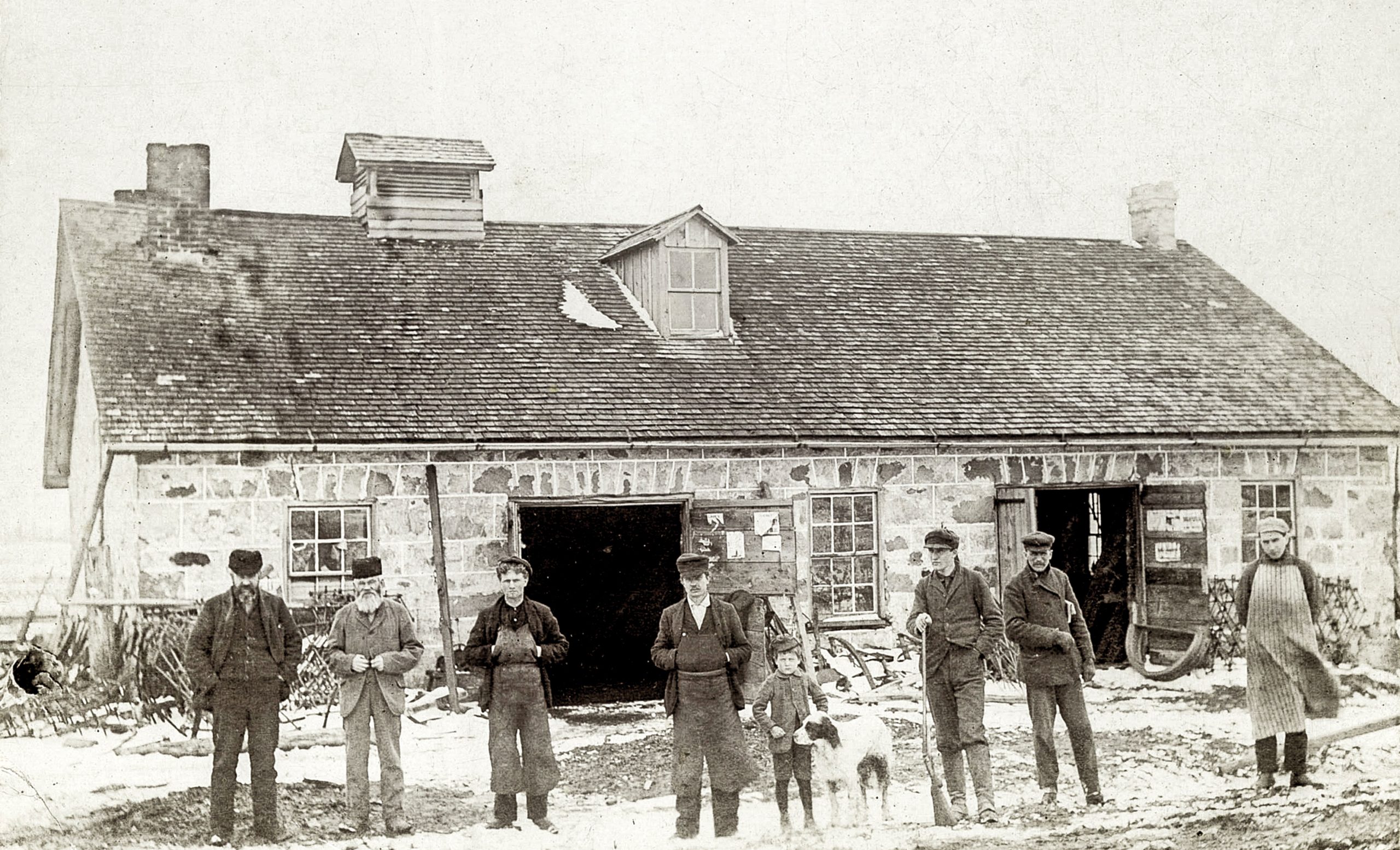 This photo from about 1900 shows James Lynes Sr. on the far left and James Lynes Jr on the far right. These are the two blacksmiths who worked in the shop from 1885 to 1955. The cupola and dormer on the original shingled roof will be replicated when the roof is replaced this fall. Submitted photo