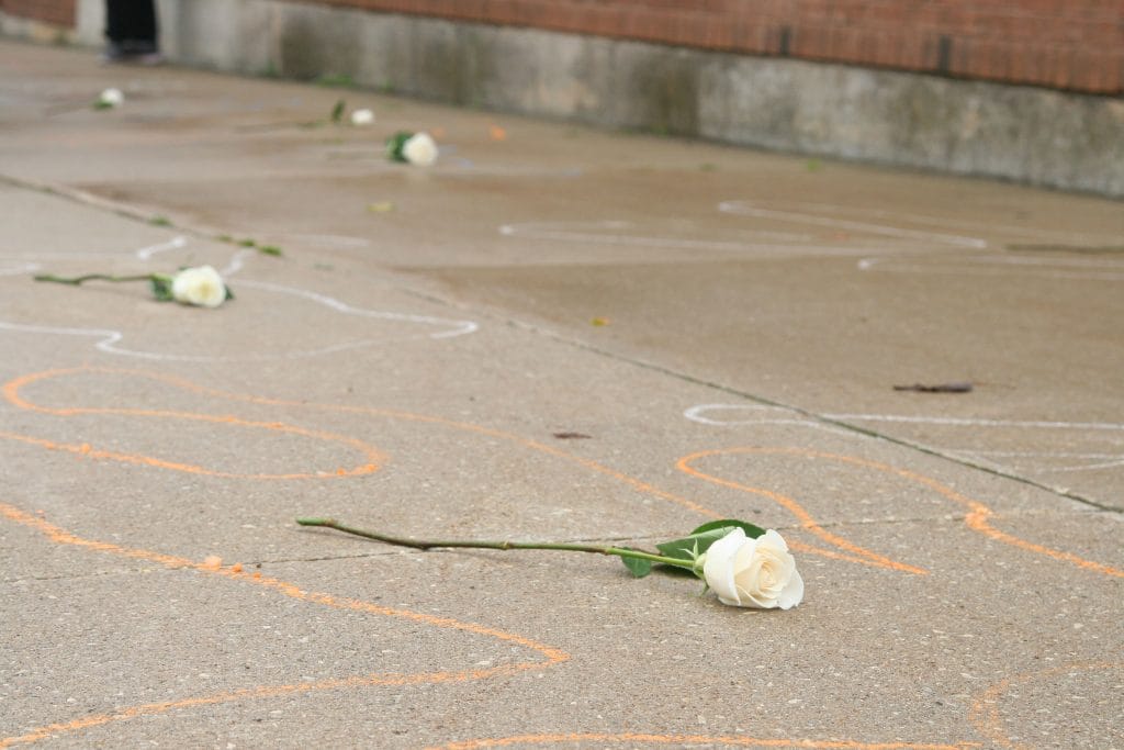 The event included a moment of silence for those who have lost their lives to drug poisoning as well as a “die-in,” where participants laid on the ground and were traced with a chalk outline. White roses were laid on the outlines to symbolize those who died.