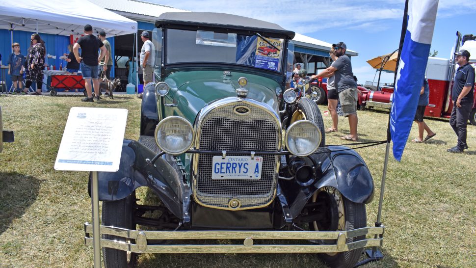 Truck show – The 12th annual Clifford Antique and Classic Truck Show ran July 2. From left: Russell Hopkins, Marg Hopkins, Sue Hopkins, Ron Hopkins and Ron Henderson attending the truck show.