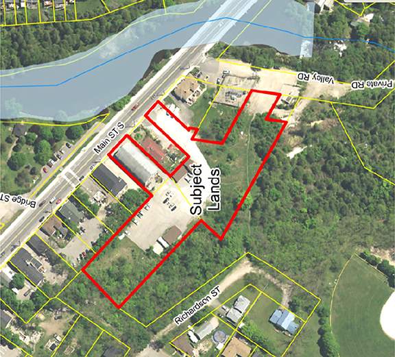 The property is a consolidated piece of land comprised of 193, 197 and 209 Main Street South.