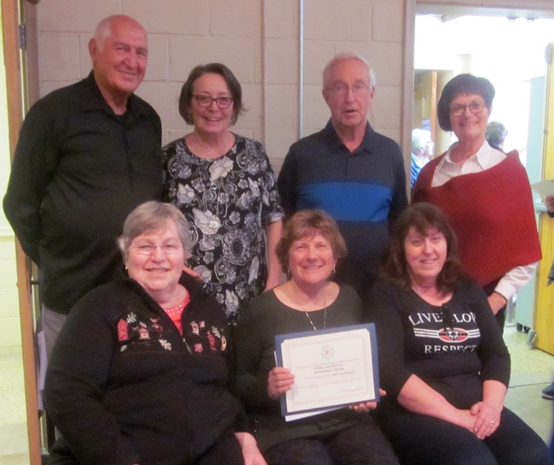 The Arthur Horticultural Society is 100 this year, a milestone recognized with a certificate presented to the Arthur members at the April 13 district meeting in Mount Forest. Left to right at back are Gerald Swan, Marilyn Theurer, Hans Theurer and Faye Craig. In front are: Doris Cassan, Terry Ireland and Cathy Watkins. Submitted photo