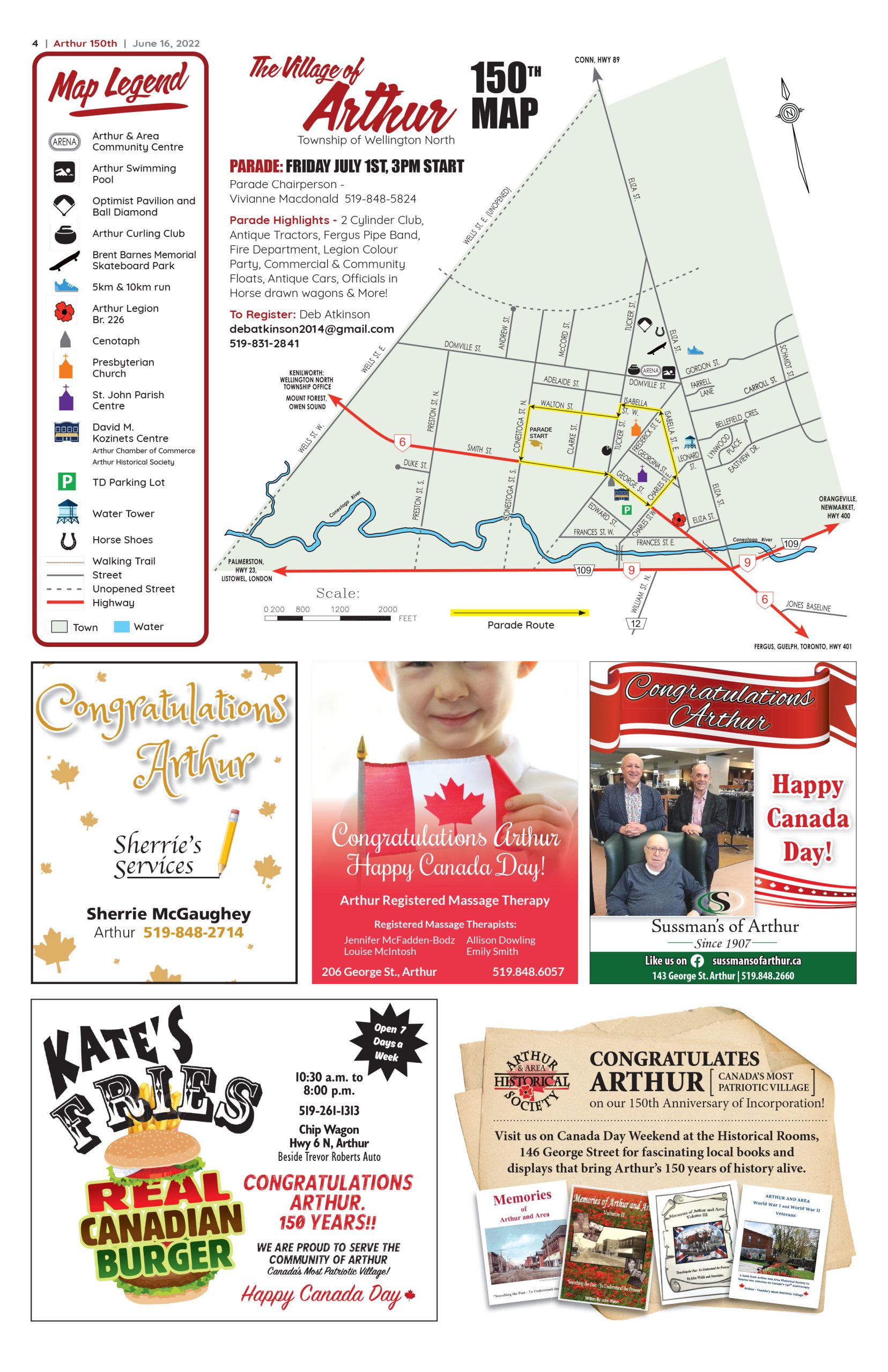 Departing Arthur Public School (Conestoga Street North) at 3pm on Canada Day, the parade will be led by Wellington North Fire Services, followed by the Fergus Pipe Band.