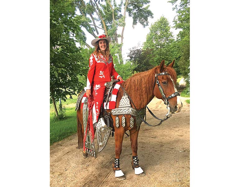 A no-parade parade – Disappointed that there would be no parade in Elora this year to participate in, local resident Elana Oakes and her horse, Oakesmuir Sparky, dressed in Canada Day colours for a one-horse Canada Day parade.