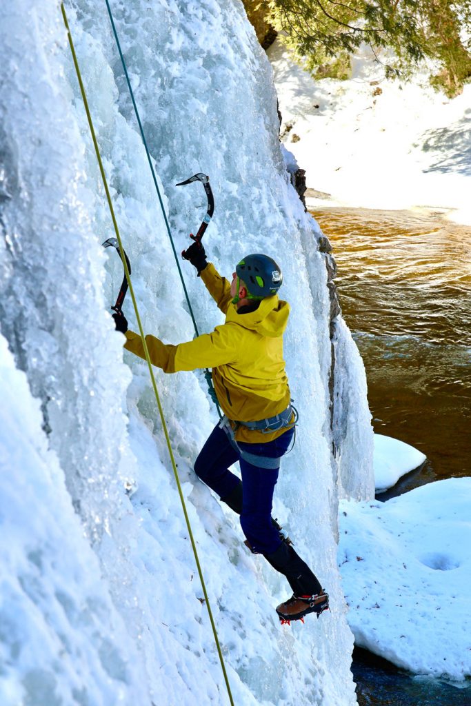 Ritchie tackles the icy gorge wall.