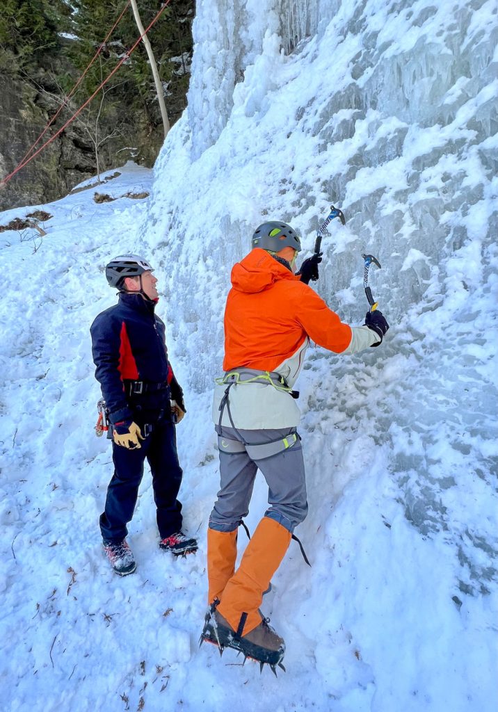 One Axe instructor Frederick Schuett offers final tips to blind climber, Terry Hoddinott.