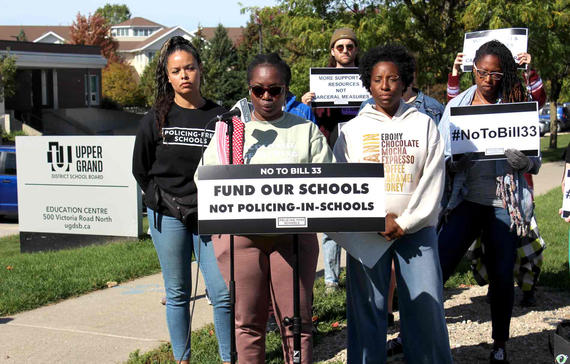 It was a stop on a provincial Policing-Free Schools tour calling for opposition to the bill and for decreased policing in schools.