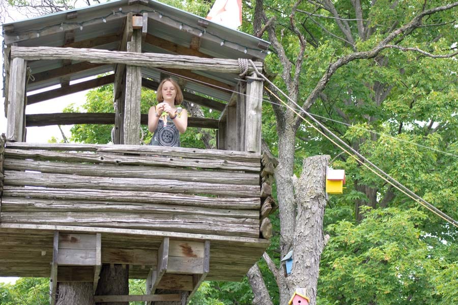 Now there’s a tree fort, built on the trunk of a massive cherry tree that had died, with an old split rail fence forming the walls. It stands as high as the roof of their bungalow and sometimes the family will retreat up there with a picnic. Or water balloons.