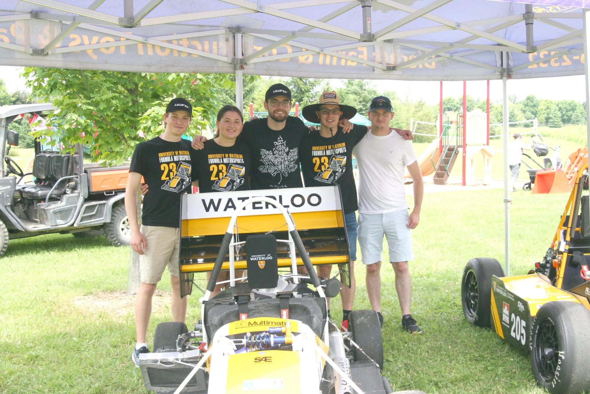 From left, Jeremy, Brooke, Reid, Julian and Zach from the University of Waterloo were at the Alma event showing off their race cars. Jeremy also gave a small speech at the ceremony after the parade of people rolled in.