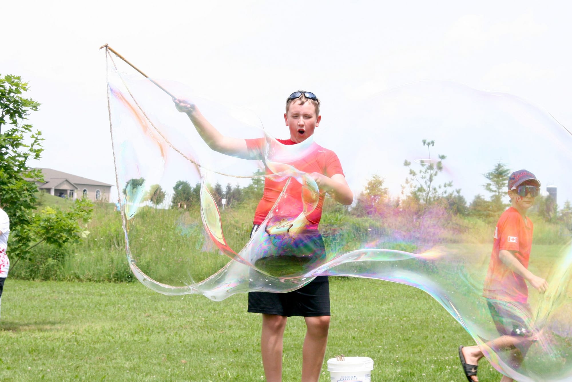 Owen Tindell participated in the parade at the Canada Day event hosted by the Alma Optimist Club at Wallace Cumming Park on July 1. After the ceremony, he went straight to the buckets of bubbles which were provided by the local Girl Guides to create a truly impressive bubble.