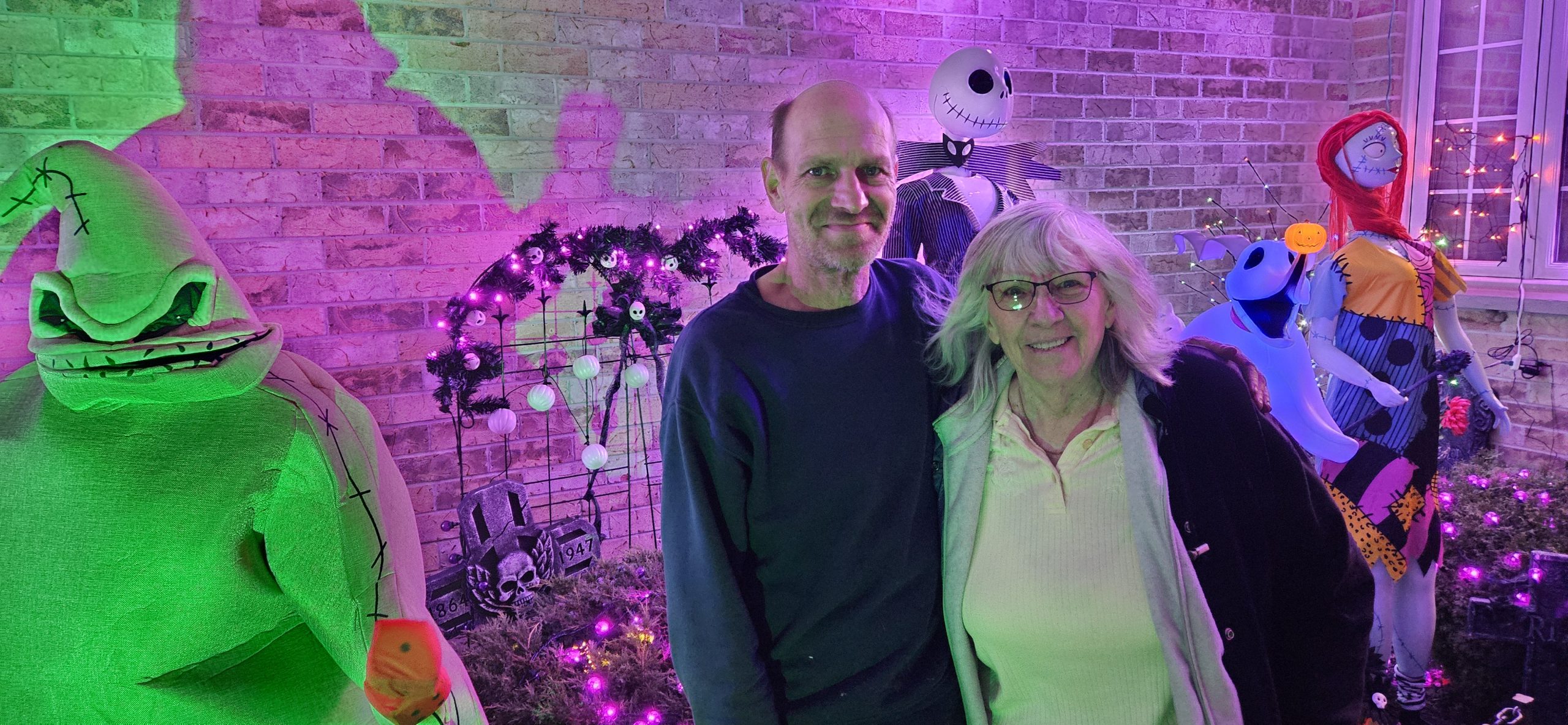 Michael Walter, left, and Shirely Sage put on a show at 15 Muir Cres. with over 100 props and display features waiting for the trick-or-treaters.