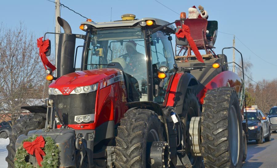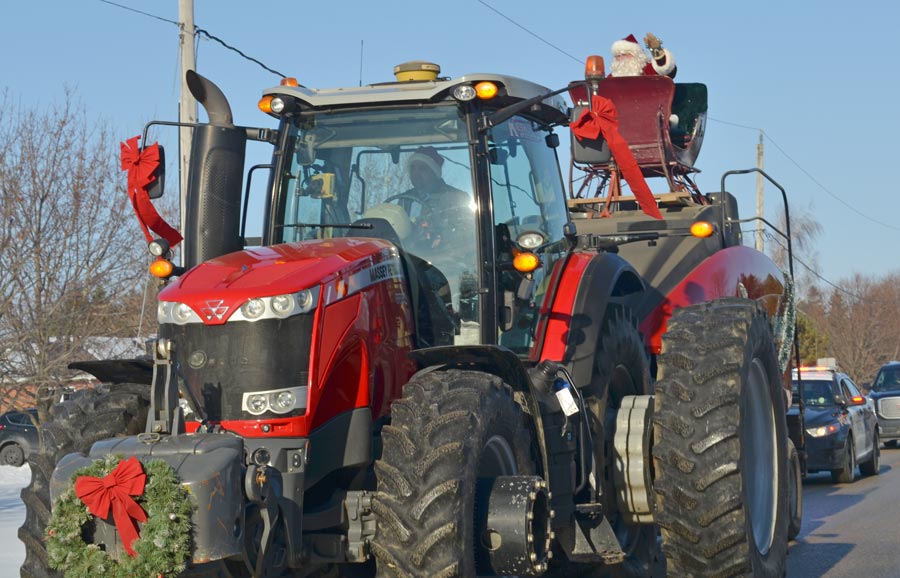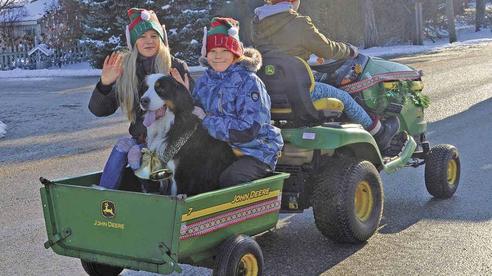 Alma celebrates the season – It was a warm, sunny afternoon at the Alma Santa Claus Parade on Dec. 22. The parade featured an array of floats with happy waving residents, and Santa with his sleigh mounted on a Case IH square baler. They set out from the Alma Community Centre and finished at Nesbitt Street.
