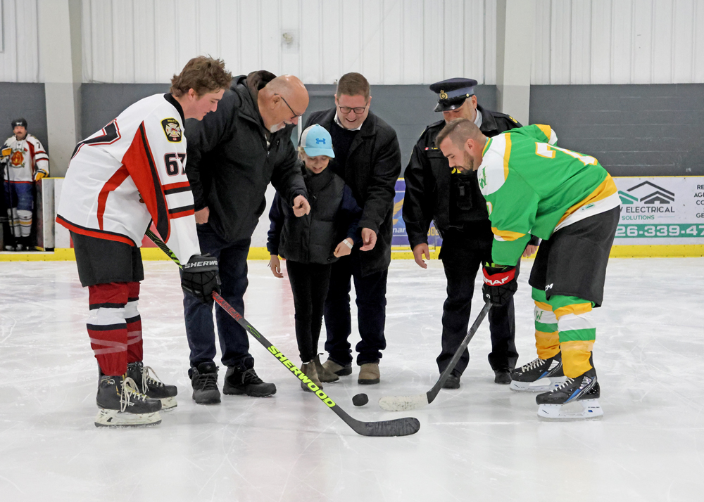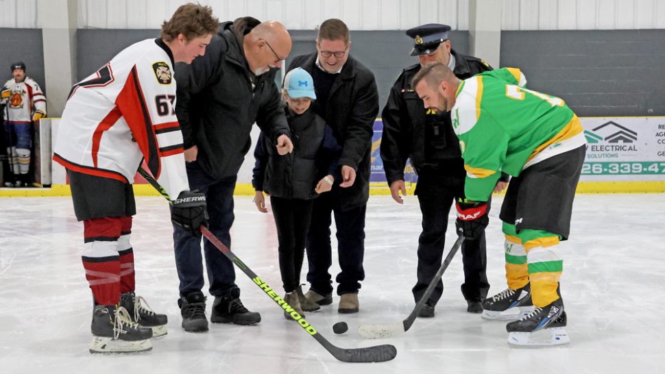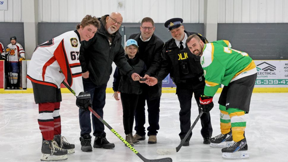 MINTO – Members of the Palmerston Firefighters Association took on the Wellington County OPP in an annual charity hockey game at Palmerston arena on Saturday night, and the clear winner was the Palmerston and District Hospital Foundation’s MRI+ Campaign. The game brought in $2,000 for the campaign.