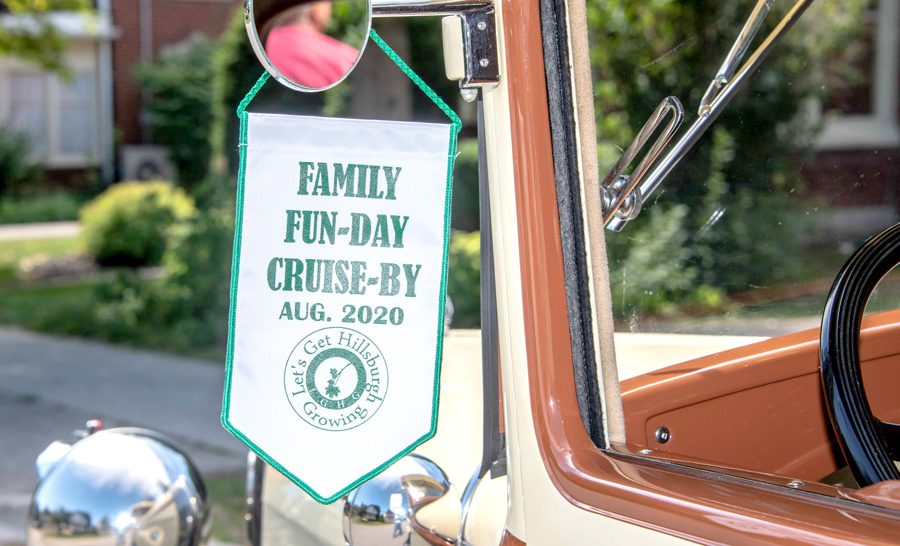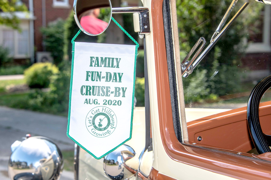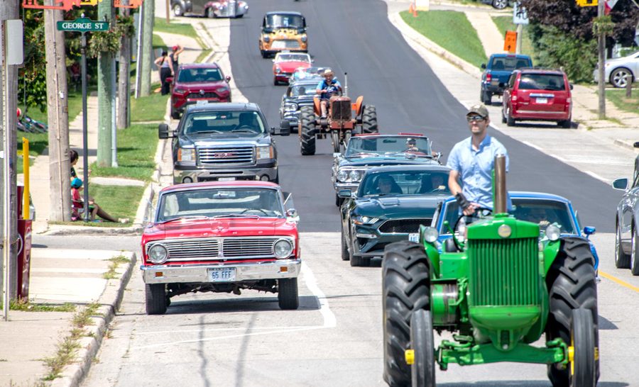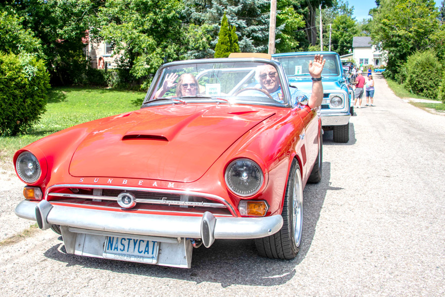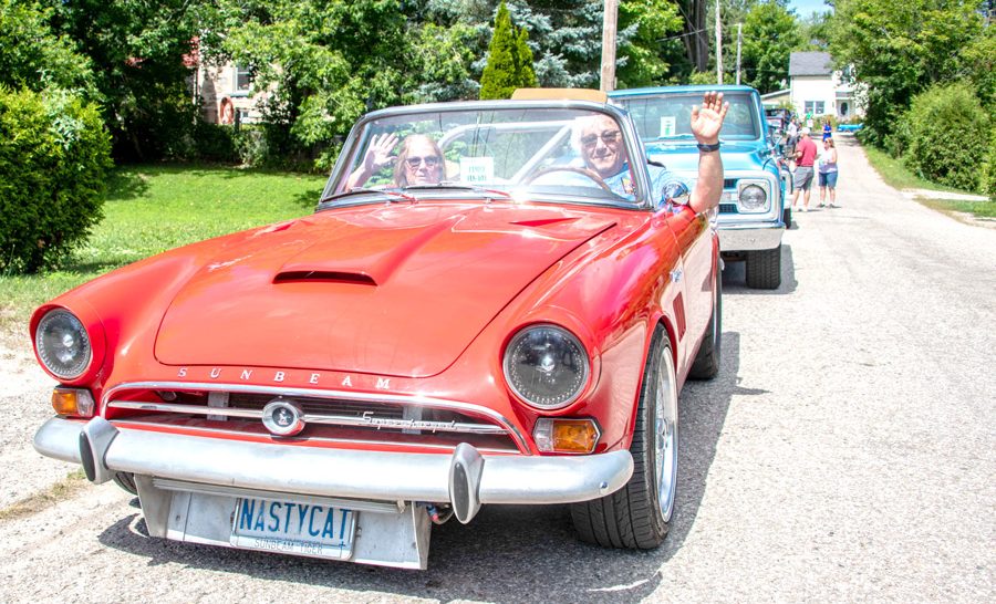 Family Fun Day Cruise – The Let’s Get Hillsburgh Growing committee has proven resilient and resourceful in facing challenges while organizing the annual Hillsburgh Family Fun Day.  Normally spread out along Hillsburgh’s downtown core along Trafalgar, the popular event was moved indoors to the Hillsburgh Community Centre at the last minute in 2019 because of uncertain weather. Due to the pandemic, the event once again took on a different look this year, going mobile in the form of a “Family Fun Day Cruise.” Residents enjoyed the sights and sounds right from their front lawn as dozens of shiny classic cars paraded along Trafalgar Road and Hillsburgh’s side streets. The cruise was led by Anne and Dave Puckering, who lived in Hillsburgh for 30 years and made the trip down from Gorrie, Ontario for the occasion. The procession also included many local classic car owners, including Erin residents Tom and Debi Clare, who proudly paraded  their classic 1966 Sunbeam Tiger, which Tom has looked after meticulously ever since buying the car brand new.