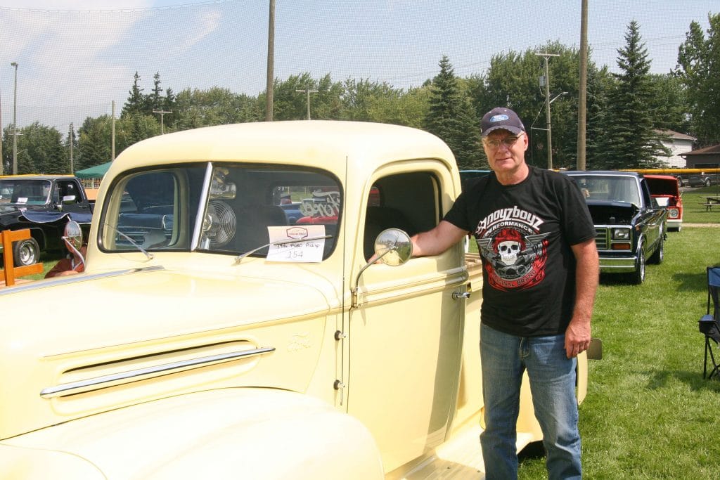 Old pickups – Kevin Rabey entered in his yellow 1946 Ford pickup into the Arthur truck show on Aug. 19.