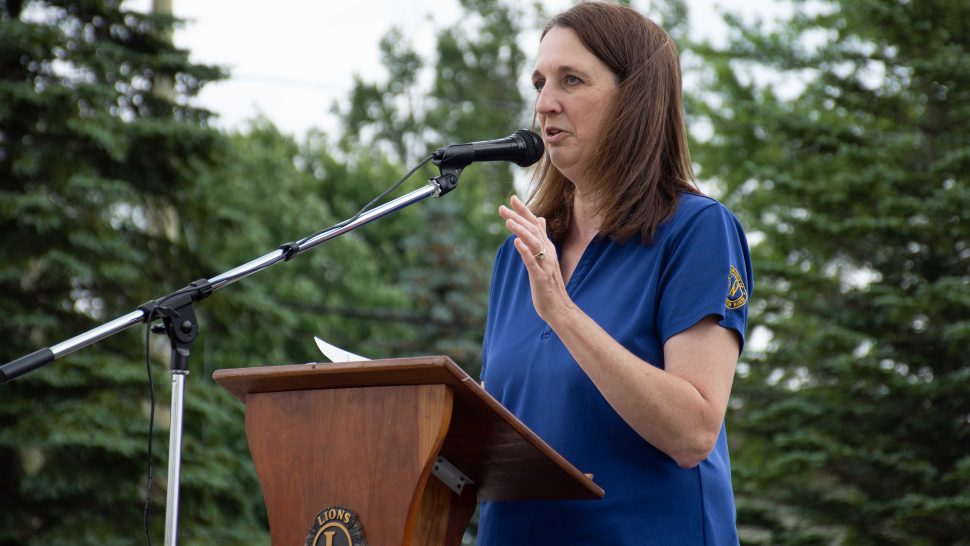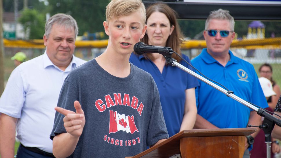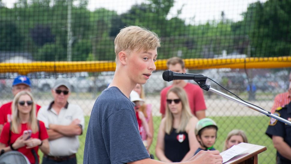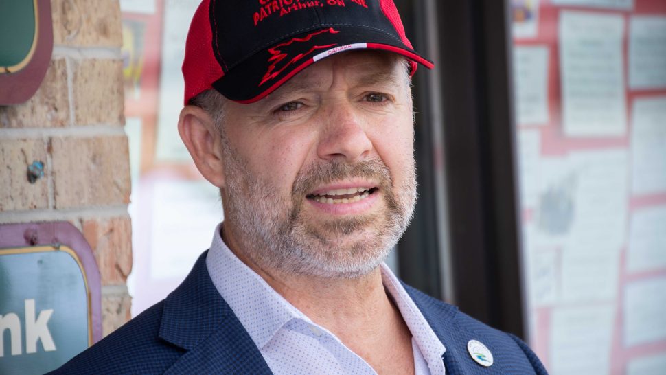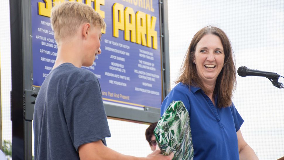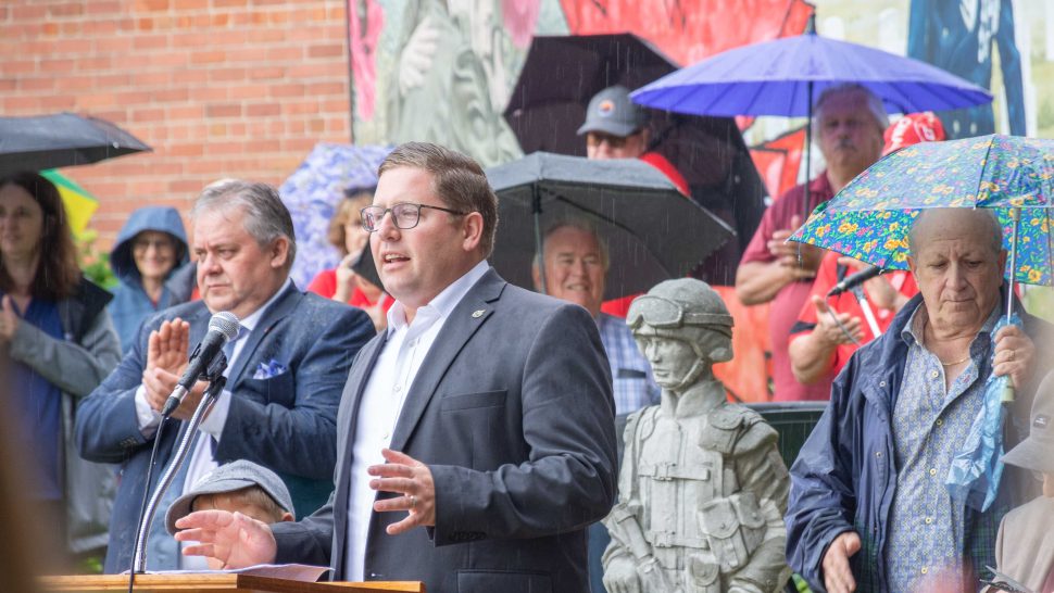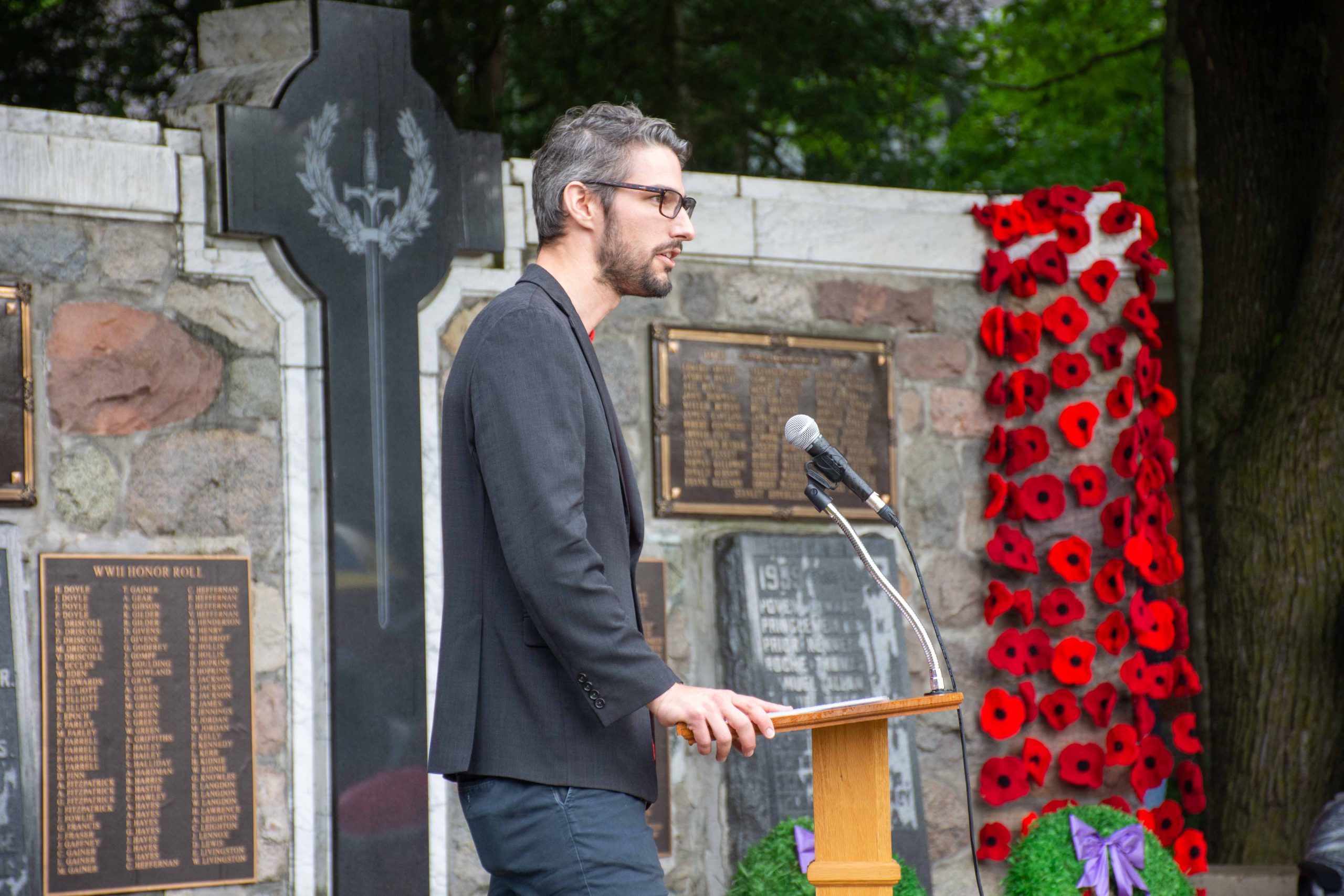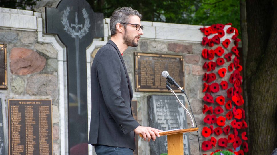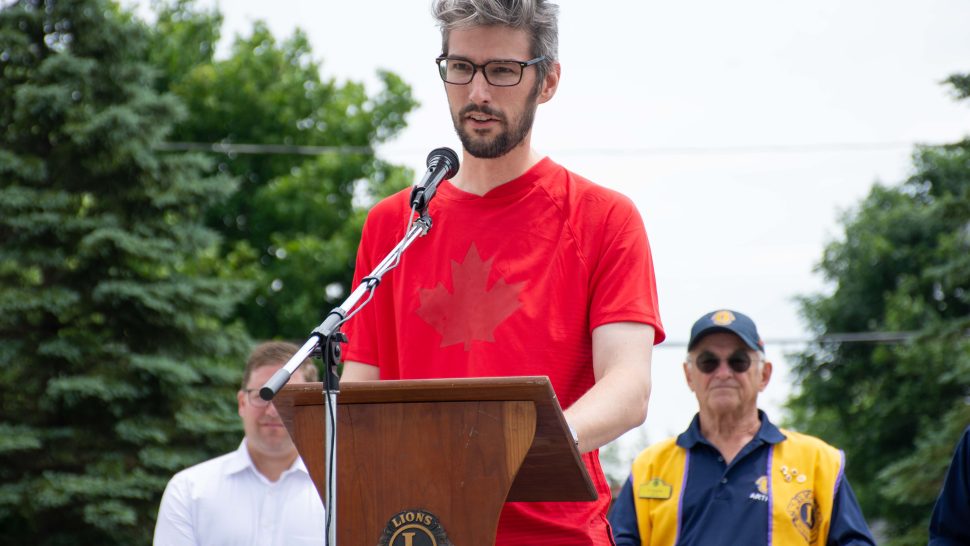 Residents showed their respect Friday morning, gathering under umbrellas and taking cover under trees as local politicians and dignitaries – including Canadian Senator Rob Black, Wellington North Mayor Andy Lennox, MPPs Ted Arnott and Matthew Rae, MP John Nater, Dave Kozinets, Nancy Croft, and the Arthur 150 committee – provided remarks on the weekend celebrating 150 years since Arthur’s incorporation.