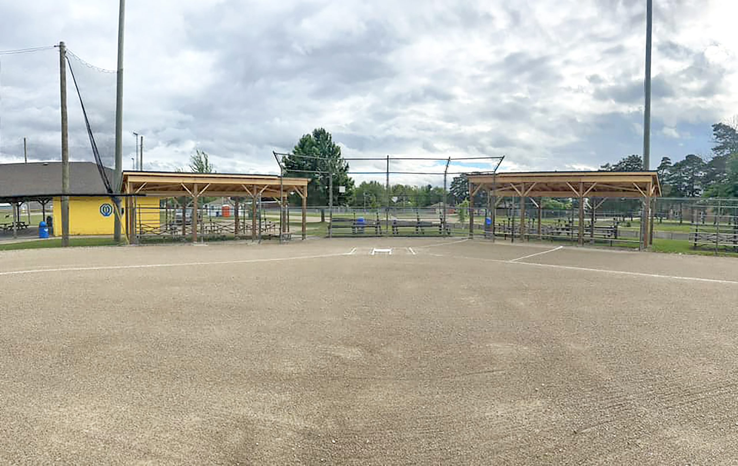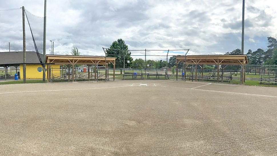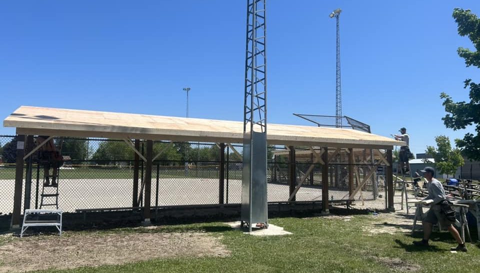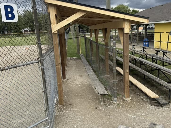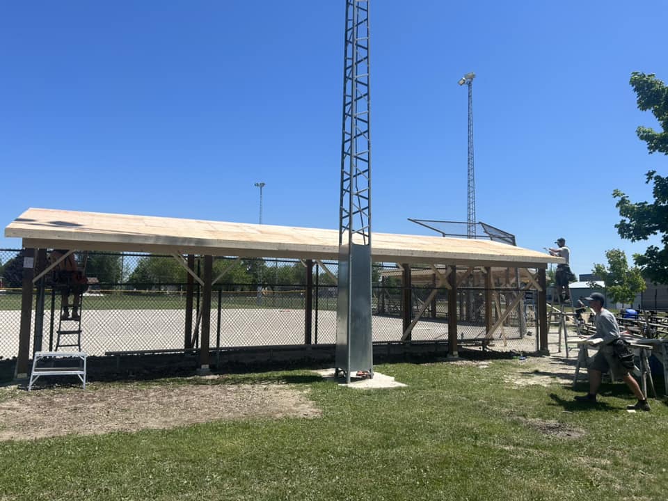 The two dugouts and covers were completed in five days but stretched out over a month from start to finish.
