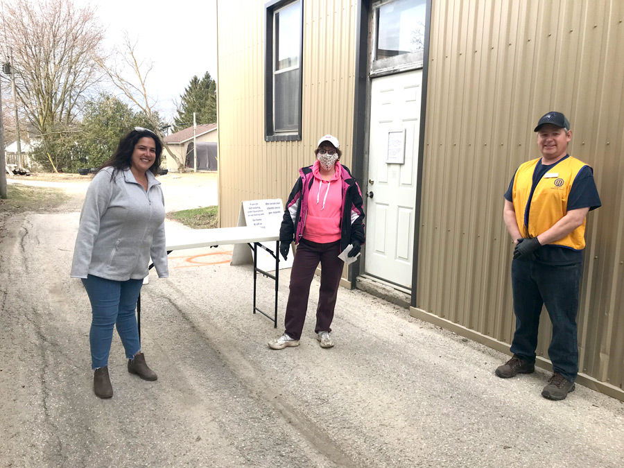 Foodbank donation - The Arthur Optimist Club represented by Greg Roelofsen, right and the Arthur Opti-Mrs Club represented by Shawna Lougheed, left, presented cheques for $1,000 each ($2,000 total) to the Arthur Foodbank represented by Annette Brunkard, centre, on April 7.