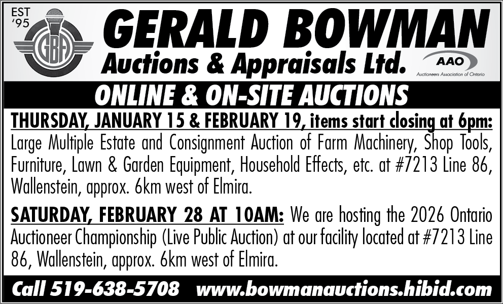 Auction Auctions this week in Wellington County January 15, 2026 by Wellington Advertiser Updated January 16, 2026 Link copied! Copy failed! This Week's Auction ListingsWellington Advertiser Auction Directory by Wellington Advertiser Updated January 16, 2026 Link copied! Copy failed!