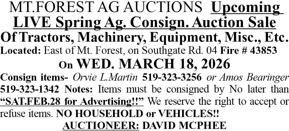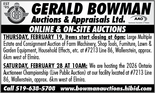 Auction Auctions this week in Wellington County Publication Date: February 12, 2026 by Wellington Advertiser Updated February 11, 2026 Link copied! Copy failed! This Week's Auction ListingsWellington Advertiser Auction Directory by Wellington Advertiser Updated February 11, 2026 Link copied! Copy failed!