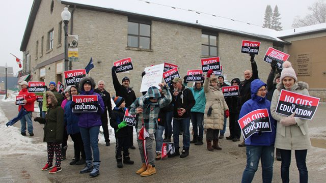 About 50 people protested the Progressive Conservative government’s proposed cuts to public…