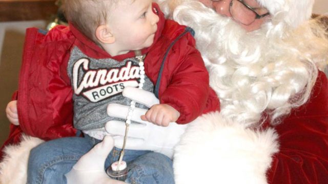 Breakfast for children’s wishes - Kaycee Quipp of Wroxeter shared a moment with Santa at the Breakfast with Santa held Dec. 7 at Gramma Jo’s Restaurant in Clifford.