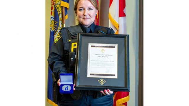ABOYNE – Wellington County OPP provincial constable Jennifer Tschanz received two accolades at a recent OPP West Region Awards ceremony.