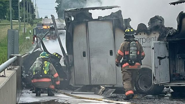 CENTRE WELLINGTON – A renovation company’s vehicle and all the tools inside were destroyed by fire after the truck hit a bridge on 8th Line in Centre Wellington Township on June 5.