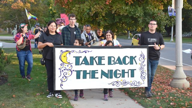 GUELPH – The theme of this year’s Take Back the Night rally was “Break the silence; stop the violence.” With the assistance of OPIRG’s Sound of the Drum drumming group and about 100 marchers, the rally was raucus, lively and loud.