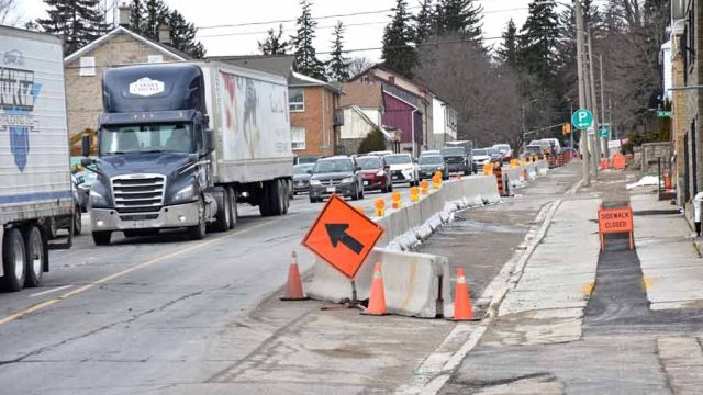 FERGUS – While work hasn’t officially begun on St. David Street North (Highway 6) in Fergus, the pre-work has and it offers a glimpse of what the summer will look like in terms of traffic.
