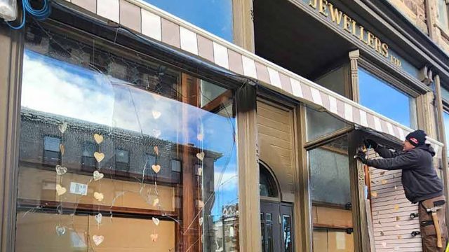 FERGUS – Early on Jan. 21, someone threw an object through the front windows of Ron Wilkin Jewellers, on St. Andrew Street West in downtown Fergus, breaking the glass and making off with some of the jewelry on display in the window.