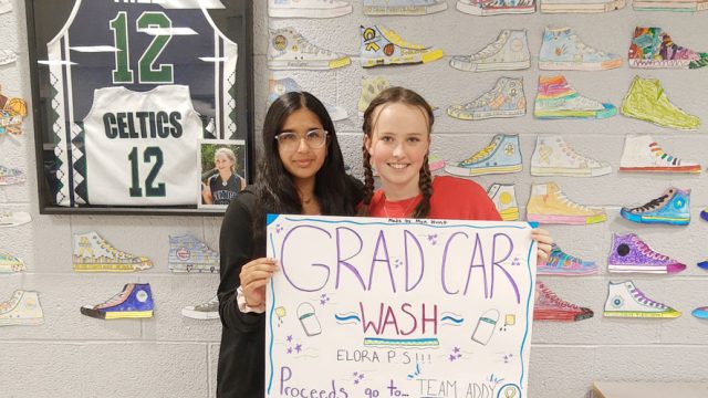 ELORA – In their final good deed of the school year, Grade 8 students at Elora Public School are holding a car wash in support of Team Addy, which in turn will give those proceeds and more to Toronto’s Hospital for Sick Children.