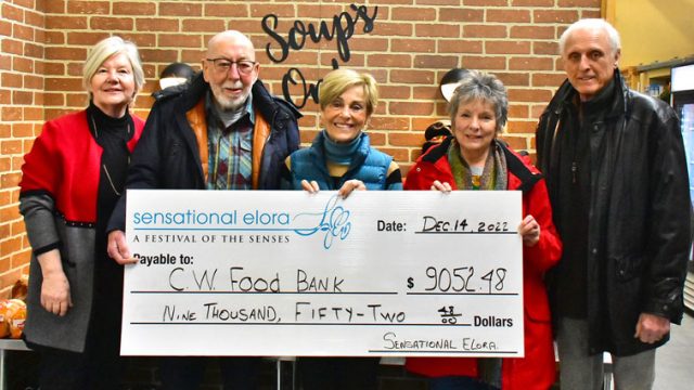 ELORA – Kirk McElwain said he felt a bit like Santa Claus on Dec. 14 as he and his colleagues handed out a cheque for $9,052 to the Centre Wellington Food Bank, and another for $957 to Centre Wellington Eats, a program at Centre Wellington and District High School.