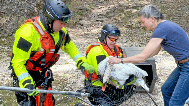 ELORA – It’s not every day the Centre Wellington fire department is called to rescue a swan from the Grand River. In fact, May 10 was the first time.