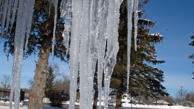 Icy curtains – A curtain of icicles hung from the roofline of the Puslinch Community Centre…