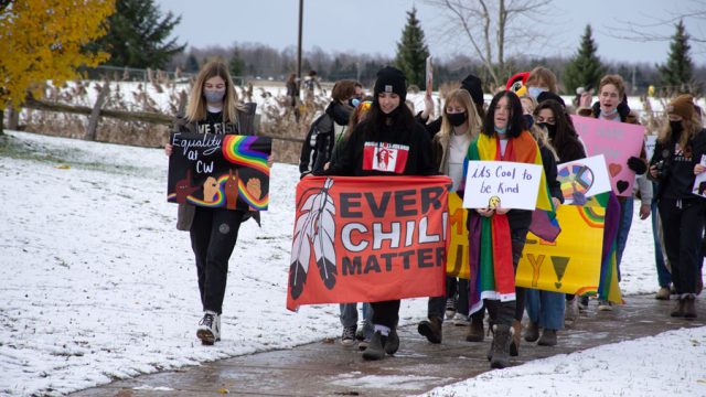FERGUS - Students at Centre Wellington District High School walked out of class en masse Friday morning to show their support for trans, gay, bi, Black, Indigenous, and other marginalized students after several transphobic and homophobic incidents at the school.