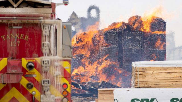 WELLINGTON NORTH – An early morning fire destroyed a large building at JM Lumber and Pallet on Feb. 29.