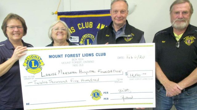 Hospital donation – Mount Forest Lions Club president Marty Young presented a cheque for…