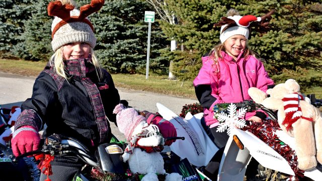 On the road to Christmas - Natalia Silverthorn and Sydney Leachman ride along with the Aberfoyle Snomobiles float in the Puslinch Santa Claus parade in Aberfoyle on Nov. 24.