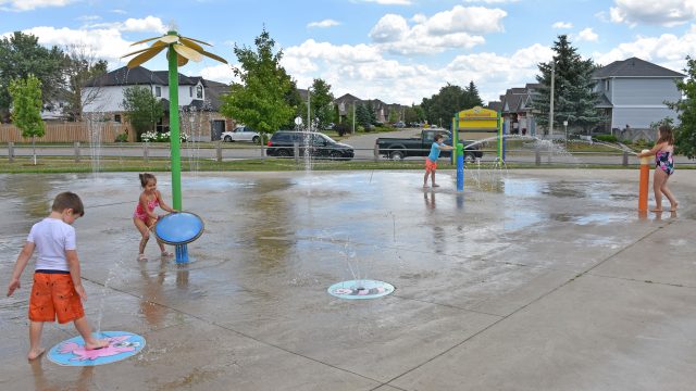 Splashpad – From left: Frankie Colangelo, Mila L. and Louie Colangelo cooled off at the splashpad…