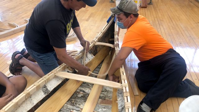 GUELPH – With direction from master birch bark canoe builder Chuck Commanda, five Indigenous students in the Upper Grand District School Board (UGDSB) have come together to build a birch bark canoe using traditional practices.