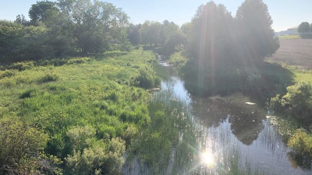 Sunlit stream – Sunlight on a stream crossing Concession 11 in Wellington North creates a…