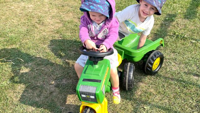 Fun at the fair – Laura and Gerrit Kaastra of Elora took a toy tractor for a spin at the Fergus…