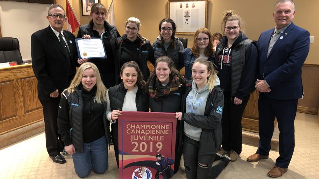Members of the Canadian Juvenile Girls Champion Palmerston Terminators were recognized by the Town…