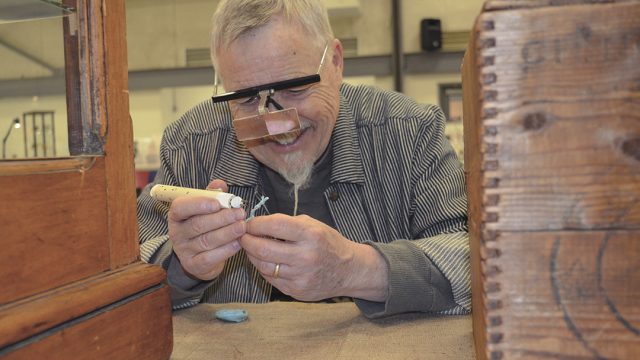 Gary Wright of Mono sculpts a tiny wax figure that will later be cast in bronze.