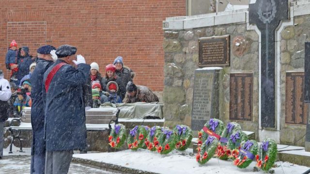 Salute – Crowds gathered at the Arthur cenotaph on Nov. 11 for the town’s Remembrance…