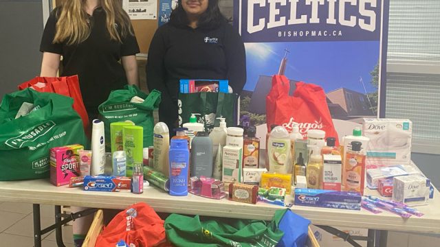FERGUS – Students at Bishop Macdonell Catholic High School collected almost 400 hygiene products to donate to Guelph Wellington Women in Crisis (GWWIC) this spring.