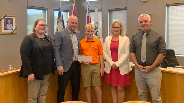 MAPLETON – Council here presented a $250 athletic bursary cheque to Woolwich Wildcats U13 player Ty Martin on June 11.