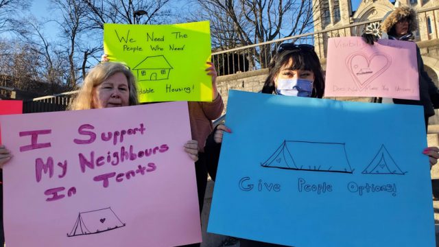 Dozens protest in downtown Guelph to support ‘homeless neighbours’