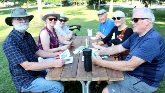 GUELPH – It was a stiflingly hot day on Aug. 11, but that didn’t stop people from gathering in the shade at Royal City Park to prepare post cards to send to Queen’s Park, in opposition of Bill 5.